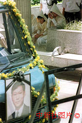 因公殉职的高级入境事务主任梁锦光先生丧礼20日在香港举行,其家人含悲为他送行。中新社传真 王瑶摄