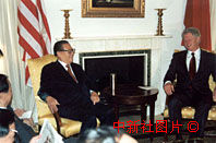 图文:江泽民主席在纽约华尔道夫饭店会见克林顿
