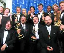 第52届电视艾美奖揭晓 “白宫”压倒“黑道” 2000年9月12日 14:18 ![]() 破了纪录的《白宫群英》剧组人员在艾美奖颁奖礼上欢呼雀跃 中新网洛杉矶9月12日消息:第52届电视艾美奖于洛杉矶时间9月10日揭晓,《白宫群英》(The West Wing),以9项大奖击败了同获18项提名的《人在江湖》(The Sopranos)。 《白宫群英》是以美国总统与其精英幕僚为主角,描写这些人置身于权力中心的白宫,如何运用权力与决策,应付新闻媒体与复杂人际关系的精彩过程。 《白宫群英》还打破了之前《仁心仁术》8项奖座的纪录,以最佳戏剧类电视影集、最佳戏剧类男女配角、编剧、导演等9项大奖,再次刷新艾美奖得奖纪录。 据此间媒体消息,原本大家看好的HBO电视剧《人在江湖》,在十八项提名中,只拿下了最佳戏剧类男主角一个大奖,“白宫”终于蠃得胜利,“黑道”不再横行霸道!(完) 相关报道:艾美奖颁奖前夕美黑人演员争取公平获奖机会 |