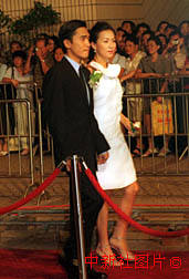 香港影星、《花样年华》的男主角梁朝伟与刘嘉玲出席二十二日在香港文化中心举行的首映式。中新社传真 任海霞 摄