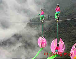 南岳衡山高空单车走钢丝表演