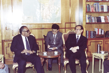 1996年5月,江泽民主席访问非洲六国。图为江主席在埃塞俄比亚国宾馆会见非洲统一组织秘书长萨利姆。(图片来源:中华人民共和国外交部网站)