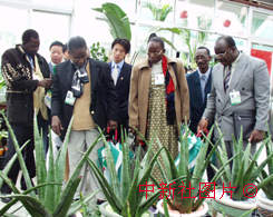 来华参加“中非论坛”的四十个非洲国家的一百八十五位贵宾,应广东之邀于十三日抵粤进行为期四天的访问。图为非洲贵宾一行在顺德市参观陈村花卉世界。作者:梁永