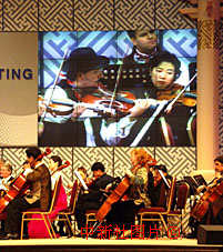 亚欧会议闭幕式上,来自与会亚欧二十五个国家的乐手组成临时的乐队,演奏“永恒的心灵”,为亚欧会议助兴。中新社记者:王晓晖 摄