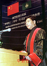 ‘二十日下午,澳门司法界人士为进入特区成立后的第一个司法年度而举行隆重典礼,图为检察长何超明在典礼上发表讲话。中新社传真宗金柱摄