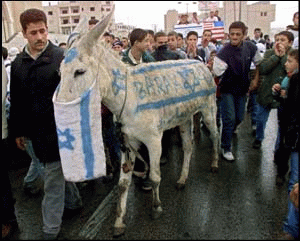 图文:以色列军队包围巴勒斯坦村庄 2000年10月24日 08:55 ![]() 巴勒斯坦示威者在一头驴子身上用油漆写上以色列总理巴拉克的名字,并向该头驴子投掷石块泄愤。 ![]() 以军包围巴勒斯坦自治区内的比特·杰拉村,防止巴勒斯坦人进入村落,向犹太人定居点发动攻击。 中新网北京10月24日消息:综合外电报道,巴以局势持续紧张,以色列国防部官员宣布,以军已包围了位于巴勒斯坦自治区城市伯利恒西北的村庄比特·杰拉,以防止巴勒斯坦激进分子进入邻近的犹太定居点发动袭击。同时,以军也关闭了加沙国际机场,以切断巴勒斯坦人对外联系。 以色列国防军总参谋长穆法兹说,以军已包围比特.杰拉村,防止巴勒斯坦人进入该村庄,向邻近犹太定居点吉鲁地区发动攻击。 他并向巴勒斯坦人发出警告,声称若巴勒斯坦人再攻击位于耶路撒冷南郊的吉鲁地区,以军将以一切手段进行还击。 据悉,周日一批不明身份的巴勒斯坦人在比特·杰拉村开枪袭击,12幢以色列住宅遇袭,以军随即出动武装直升机,向该村发射导弹;以军坦克也向该村开火,以军的攻击行动造成10名巴勒斯坦人中弹受伤。 吉鲁地区是以色列在1967年中东战争后占领的,随后被纳入耶路撒冷市政区。该地自上月末巴以流血冲突爆发以来,曾遭到5次攻击。 巴以冲突目前已进入第4周,但情况仍然非常紧张,至今已造成134人死亡,约4,000人受伤。 |