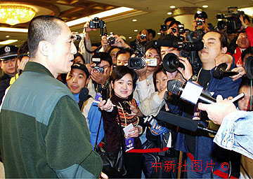 张艺谋在中国金鸡百花电影节上成为媒体采访的焦点 2000年11月22日 08:38 ![]() 第九届中国金鸡百花电影节颁奖仪式二十一日在广西南宁市人民代表大会堂举行。中国著名电影导演张艺谋成为媒体采访的焦点。中新社记者 钱兴强 摄