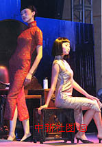 在北京举办的影片《花样年华》的首映式上,由中国著名的新丝路模特为宾客们展示一台充满东方女性美、梳妆好年华的中国传统旗袍秀。中新社记者 钱兴强 摄