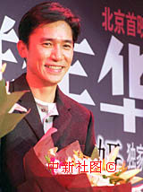 在53届戛纳电影节上荣获两项大奖的中国经典影片《花样年华》,二十四日晚在北京嘉里中心饭店举行首映式,影片中男主角扮演者,著名影星梁朝伟出席了首映式。中新社记者 钱兴强 摄