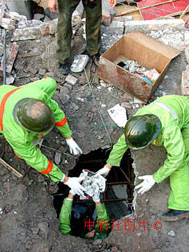 广东东莞一幢擅自施工的私人建筑物一日晚倒塌,造成八人死亡,四十余人受伤,一百多人失踪。图为搜寻人员进入塌楼找回贵重物品。中新社图片潘劲松 摄