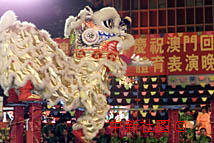 图片:澳门武术总会表演舞狮庆祝澳门回归一周年