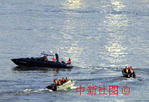 图片:澳门担任保安警戒任务的船只在水面上往来疾驰