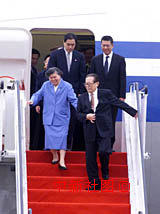 ![]() 何厚铧陪江泽民与王冶坪下机.国家主席江泽民与夫人王冶坪在澳门特区行政长官何厚铧的陪同下,于19日下午乘专机抵达澳门机场,出席澳门回归祖国一周年庆典活动,江泽民主要陪同人员钱其琛等同机抵达。中新社传真 满会乔摄 |