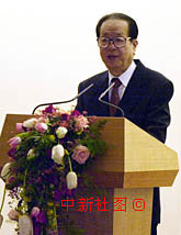 国务院副总理钱其琛十九日在澳门特区成立一周年庆祝晚宴上发表讲话。中新社传真 宗金柱 摄