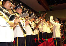 澳门警察银乐队在特区政府成立一周年庆祝大会开幕时演奏国歌。中新社传真宗金柱摄