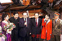 江泽民主席与钱其琛、于永波以及香港歌唱家莫华伦同台高歌。中新社传真 满会乔 摄