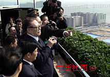 国家主席江泽民21日在澳门中银大厦楼顶平台观看澳门全景。中新社/澳新局传真