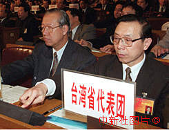 台湾省代表张水均、和香港代表袁武在全国人大闭幕会上