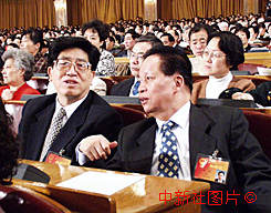 肖扬与韩杼滨出席九届全国人大三次会议预备会 2000年3月5日 11:51 ![]()
