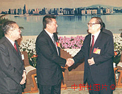 江泽民与澳门特区行政长官何厚铧握手交谈 2000年3月9日 08:49 ![]()