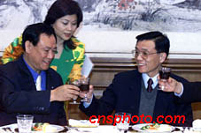 图文:李炳才会见国民党、新党“三通”参访团 2001年1月6日 10:27 ![]() 国务院台湾事务办公室副主任李炳才5日在北京钓鱼台国宾馆设午宴,欢迎由何智辉率领的台湾国民党“三通”参访团。中新社记者 毛建军 摄