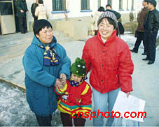 22日,一批违反社会治安管理条例的法轮功练习者,经过教育悔改后提前获得解教。图为一名悔悟的法轮功练习者(右一)获得提前解教后,高兴地与家人团聚。中新社图 潘旭临 摄