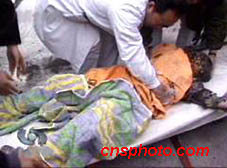 23日,执勤民警在“法轮功”痴迷者自焚现场奋力抢救受伤者。中新社图