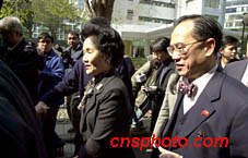 香港特首董建华2月15日宣布,香港财政司司长曾荫权(右)接替前不久提出辞职的陈方安生任香港政务司司长。中新社传真任晨鸣摄