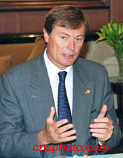 万事达卡国际组织亚太区副总裁薛家乐先生,二十二日在北京召开的中外记者见面会上,谈新世纪该组织在中国市场的前景规划。中新社记者 钱兴强 摄