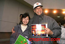 北京第四中学的学生二十二日向国际奥委会评估团赠送纪念册,上面有委员们的漫画像。中新社图 赵彤杰 摄