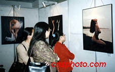 许多女性结伴观赏海南二月举办的首次人体摄影艺术展。中新社图 莫成雄 摄