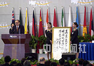 中国国家主席江泽民特意赋诗赠送亚洲论坛,祝贺在中国的第一个国际组织,二十七日于海南博鳌成立。中新社记者 贾国荣 摄