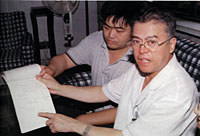 曾给李洪志做过阑尾切除手术的主治医师、吉林省人民医院副院长李英杰(右)讲述当年为李洪志确诊手术的情景。