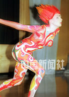 图:香港圣迪斯哥国际会议上表演“赤裸”体绘