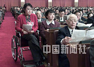 全国政协委员、著名残疾青年张海迪出席三日在北京人民大会堂举行的全国政协九届四次会议。中新社记者 毛建军 摄
