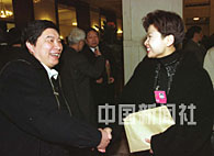 全国政协委员,著名歌唱家董文华和著名运动员王义夫在政协开幕式上喜相逢。中新社记者 钱兴强 摄
