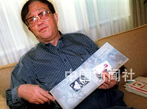 中国大陆著名导演谢晋6日在香港宣传即将上演的电影《女足9号》,他展示上海为谢晋导演的以女运动员为题材的《女篮5号》和《女足9号》发行的地铁纪念封,这是中国首次发行以文化素材为内容的纪念封。中新社传真洪少葵摄