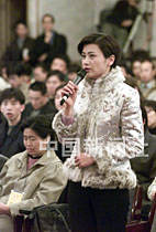 九届全国人大四次会议七日下午举行记者招待会,国家发展计划委员会主任曾培炎与记者见面。图为香港凤凰卫视著名记者吴小莉获得提问机会。中新社记者 毛建军 摄