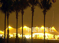 海南岛博鳌椰林边的中国最大膜结构建筑灯火璀璨,这里二月举行亚洲论坛之后,每天吸引上万人慕名前来观光。为维护小渔村的自然环境,三月开始限制参观人数。中新社记者 贾国荣 摄