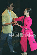 中央芭蕾舞团在三.八妇女节来临之际,为北京的观众演出一九六四年创作的大型芭蕾舞剧《红色娘子军》,图为常青指路一场戏。中新社记者 张勤 摄