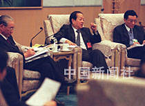 钱其琛副总理八日参加全国政协台湾代表团讨论,答复台湾委员提出的问题。中新社记者 宋吉河 摄