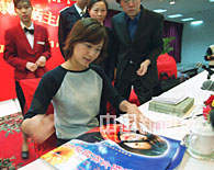 中国青年女演员徐静蕾因其良好的社会声誉被全国妇联授予“健康大使”称号,她正忙于为观众签名。中新社记者 王丽南 摄