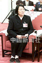 全国人大代表申纪兰是唯一从第一届至第九届连任的代表,十三日她在山西代表团会议上,向参加会议的李鹏委员长介绍山西农村生活的发展变化。中新社记者 毛建军 摄