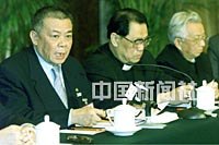 中国佛教协会副会长刀述仁日前在北京宣读《中国佛教协会致全国佛教界的公开信》,倡导佛教徒反对“法轮功”邪教。中新社记者 满会乔 摄