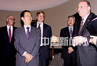 美东时间19日中午,国务院副总理钱其琛会见美国工商金融界人士时说,次日,他将与美国主流媒体负责人共进早餐。公司老板们对钱其琛开玩笑说:“那他们肯定会提很多问题难为你的。”宾主听后大笑。中新社记者 陈建 摄