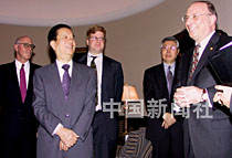 国务院副总理钱其琛当地时间十九日会见美国工商界人士时说,他明日将与美国主流媒体负责人共进早餐。美国大公司的老板们对钱其琛开玩笑说:“那他们肯定会提很多问题难为你的。”宾主听后大笑。中新社图 陈建 摄