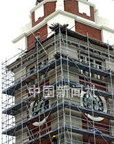 香港尖沙咀著名的古建筑“钟楼”全面装修工程3月20日完工,工人开始拆除装修架,三天后“钟楼”将露出全貌。中新社传真 任晨鸣 摄