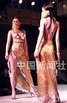 在上海举行的第六届“中国国际内衣、沙滩装及辅料展览会”,向人们演绎了内衣流行趋势,图为“黄金时代”主题。中新社记者 潘索菲 摄