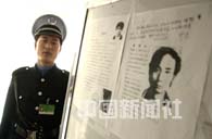 北京城乡各处二十一日张贴公安机关签发的通辑令,捉拿石家庄系列爆炸案的嫌犯靳如超,另一名为北京市通辑的第一号逃犯。中新社记者 贾国荣 摄