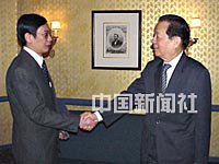美东时间三月二十三日晚,中国国务院副总理钱其琛在下榻的饭店接受美国《侨报》总编辑郑衣德的采访。钱其琛表示,中国愿意同美国共同努力,加强接触,扩大合作。中新社图 杜小京 摄